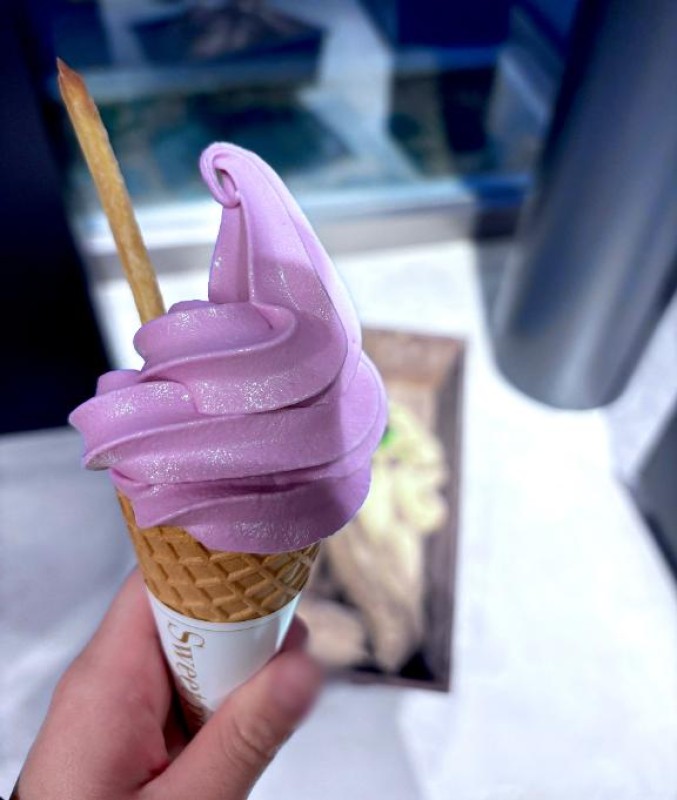 3時のおやつに…?紫芋のアイスクリーム~!??揚げたて芋けんぴを添えて…?夏も冬もアイスクリームはとってもおいしくて…??甘いものが身体に沁…