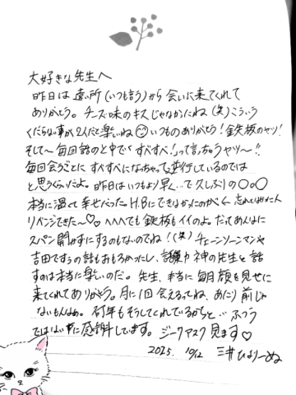 おっはよ? ひよりですっ?? なぁ、聞いてーん!! 昨日はしらゆき姫で出会ったお兄様が 3人も会いに来てくれてん( ;∀;) (ジャック時代からはるばる関西から年に2.3回も会いに来てくれたお兄様もありがと? ??ぷち?????フィナンシェ、ほんまにプチやった。ぱくぱく?(笑)) 嬉しい?? ありがと( ;∀;) 会うたびに、 ふたりだけの【鉄板】と、 【前回のひよりとはできなかったこと】 を絶妙に織間混ぜて、 ぜったいきみを退屈させないから、 これからも仲良くしてね( ;∀;) 今日も朝からRepezen しらゆき姫の 仲良しさまだー!!!! 気をつけて来てね???? ※今日は待機中にお礼日記ぜんぶかきます するっ!! |