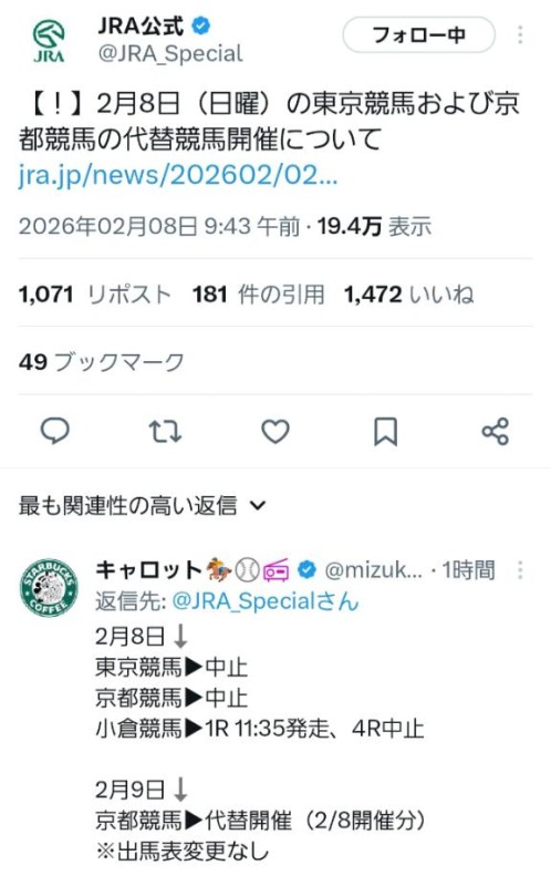 京都と東京が…中止…(´;ω;`)?あさ、朝から衝撃のニュースで競馬好きな人たちはブラックな一日かもしれませんが月曜と火曜やるみたいで良かっ…